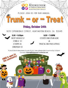 Join us for a fun-filled evening of decorated trunks, sweet treats, and games! We canβt wait to see your costumes!!